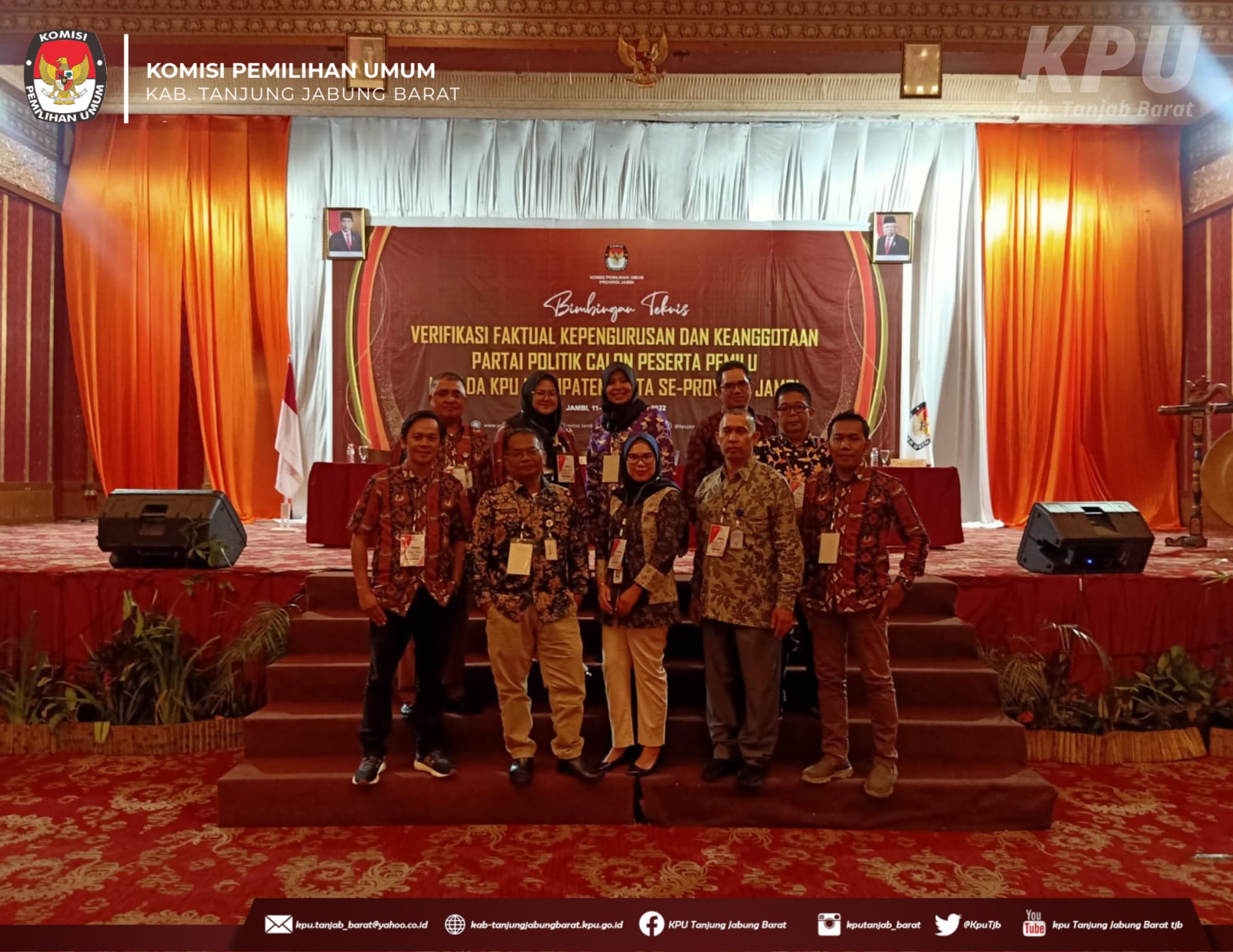 Kpu Kabupaten Tanjung Jabung Barat mengikuti Kegiatan Bimbingan Teknis Veriifkasi Faktual Kepengurusan dan Keanggotaan Partai Politik Calon Peserta Pemilu yang di adakan di Aula Hotel Abadi Suite.