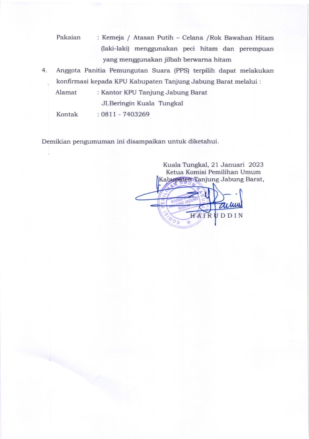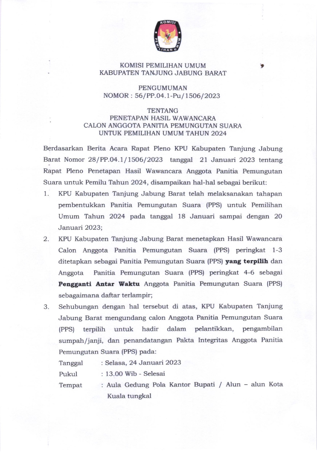 Download PDF PENGUMUMAN PENETAPAN HASIL WAWANCARA ANGGOTA PPS KPU KAB. TANJUNG JABUNG BARAT.