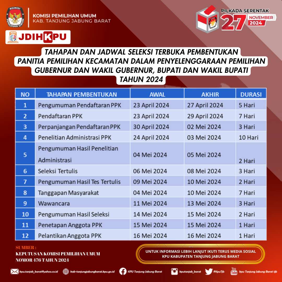 REKRUTMEN PANITIA PEMILIHAN KECAMATAN (PPK) SE-KABUPATEN TANJUNG JABUNG BARAT MENUJU PILKADA SERENTAK TAHUN 2024