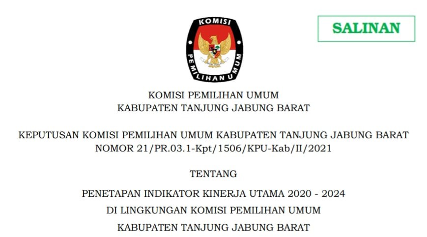 Untuk mendownload file silahkan klik tautan berikut : SK PENETAPAN INDIKATOR KINERJA UTAMA 2020 - 2024 DI LINGKUNGAN KPU KAB. TANJUNG JABUNG BARAT