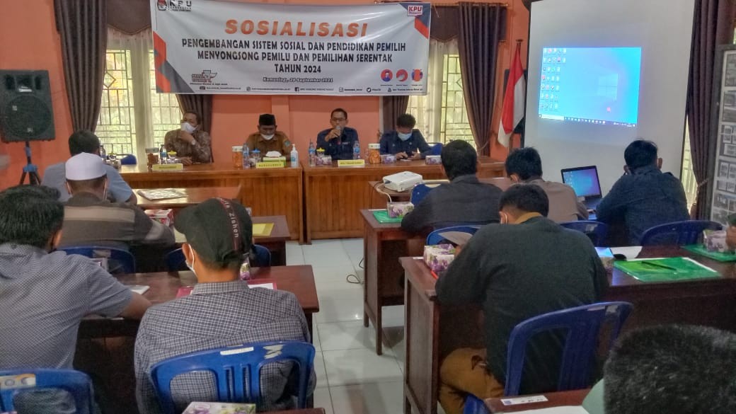 Tema dalam acara tersebut adalah sosialisasi Pengembangan Sistem Sosial dan Pendidikan Pemilih Menyongsong Pemilu dan Pemilihan Serentak Tahun 2024.