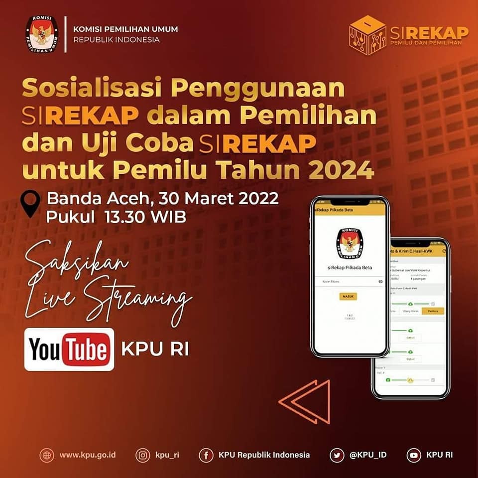 Kegiatan ini di buka oleh Anggota KPU RI I Dewa Kade Wiarsa Raka Sandi bersama Evi Novida Ginting Manik dengan tema Sosialisasi Penggunaan Sirekap dalam Pemilihan dan Uji Coba Sirekap untuk Pemilu Tahun 2024 di Banda Aceh, Rabu (30/3).